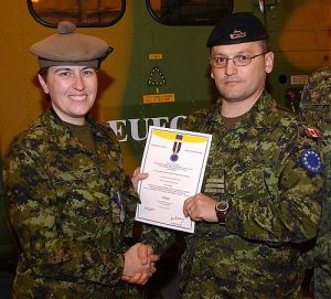 Warrant Officer J. Boutin, CD | WO Boutin, a Regular Force soldier from the Royal 22e Regiment, served as Regimental Support Staff and Ops and Training WO. The nomination stated: “For leadership and expertise beyond his rank. With years of experience and overseas deployments, he had provided the unit with extensive guidance and skills when planning unit activities. His devotion and attention is worthy of the highest praise.” |