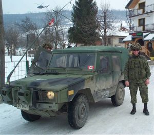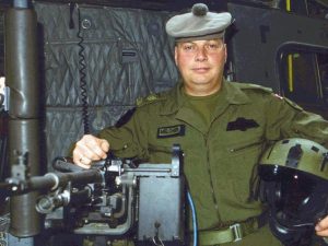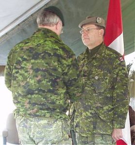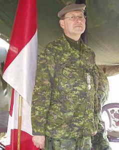 Beginning his career as a reserve soldier in 1973, he served with 1 Montreal Militia Service Battalion, and The Black Watch (Royal Highland Regiment). Later he joined The Calgary Highlanders and achieved the rank of Corporal. After a UN tour in the Golan Heights, he moved from Calgary to London Ontario and transferred to 4 RCR where he received his commission. Serving in virtually every position in the Battalion, he was given the honour of carrying the Colours at the Royal Canadian Regiment Centennial Trooping of the Colours and eventually became Commanding Officer.
